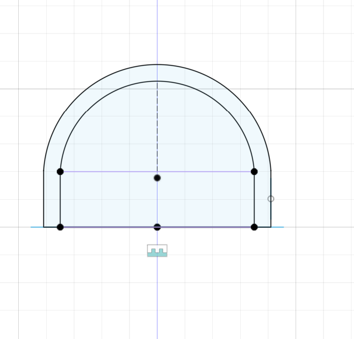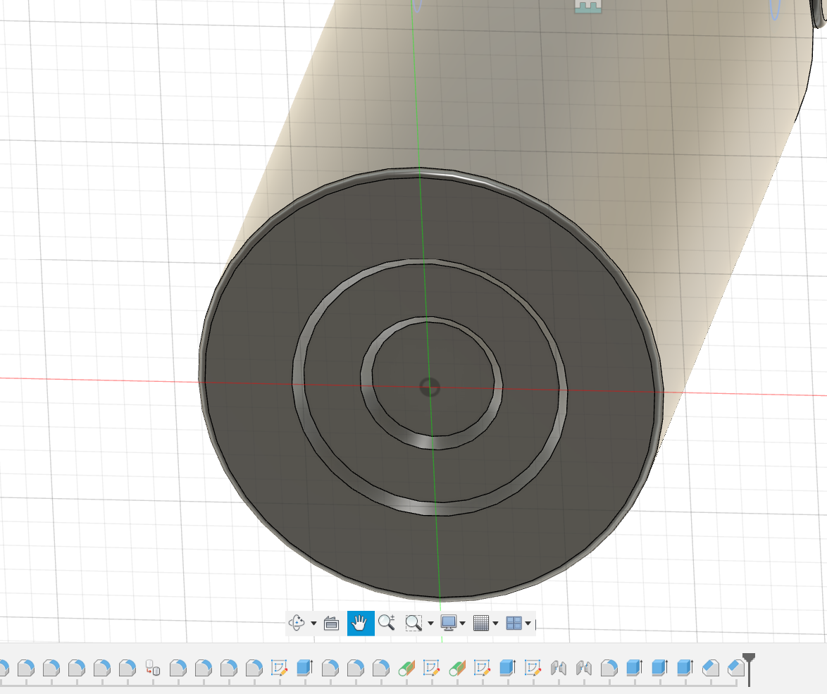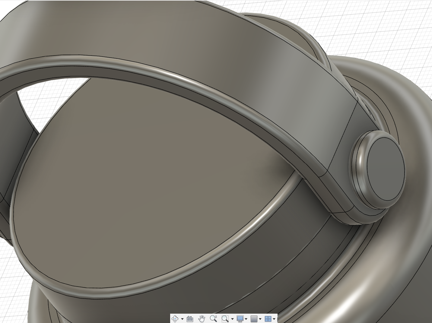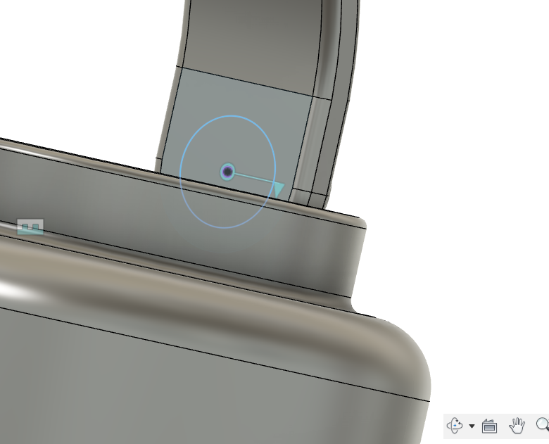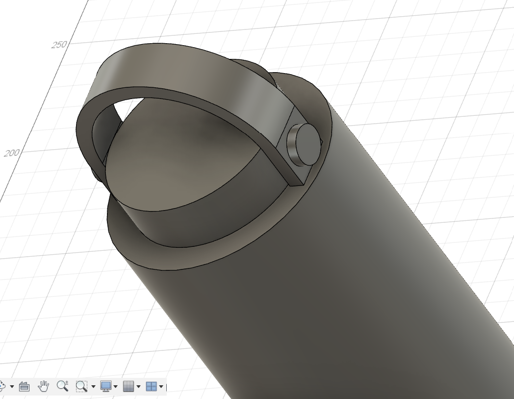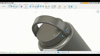 Finally, I added my joint to attach the handle to the lid, and to attach the lid to the bottle. To do this, I created projections of the circles on the end of the handle onto the cap to give a point of reference for the joint.