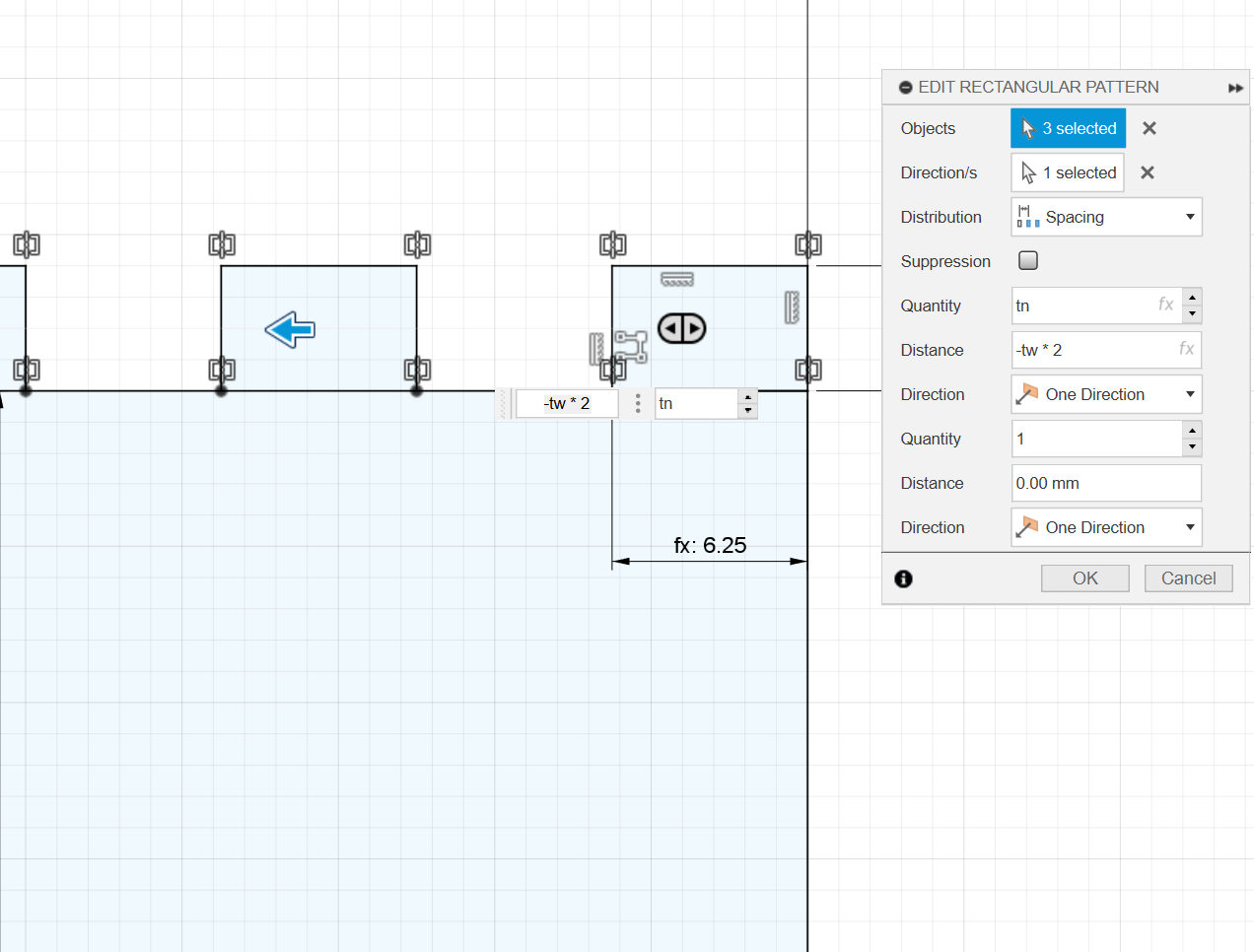 A sketch of the box, along with the rectangular pattern I used to create the teeth.