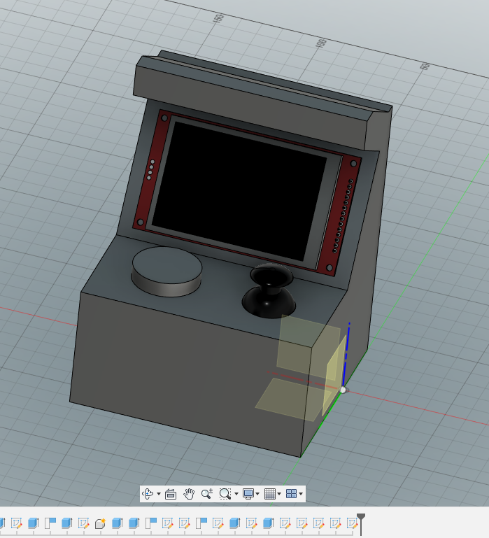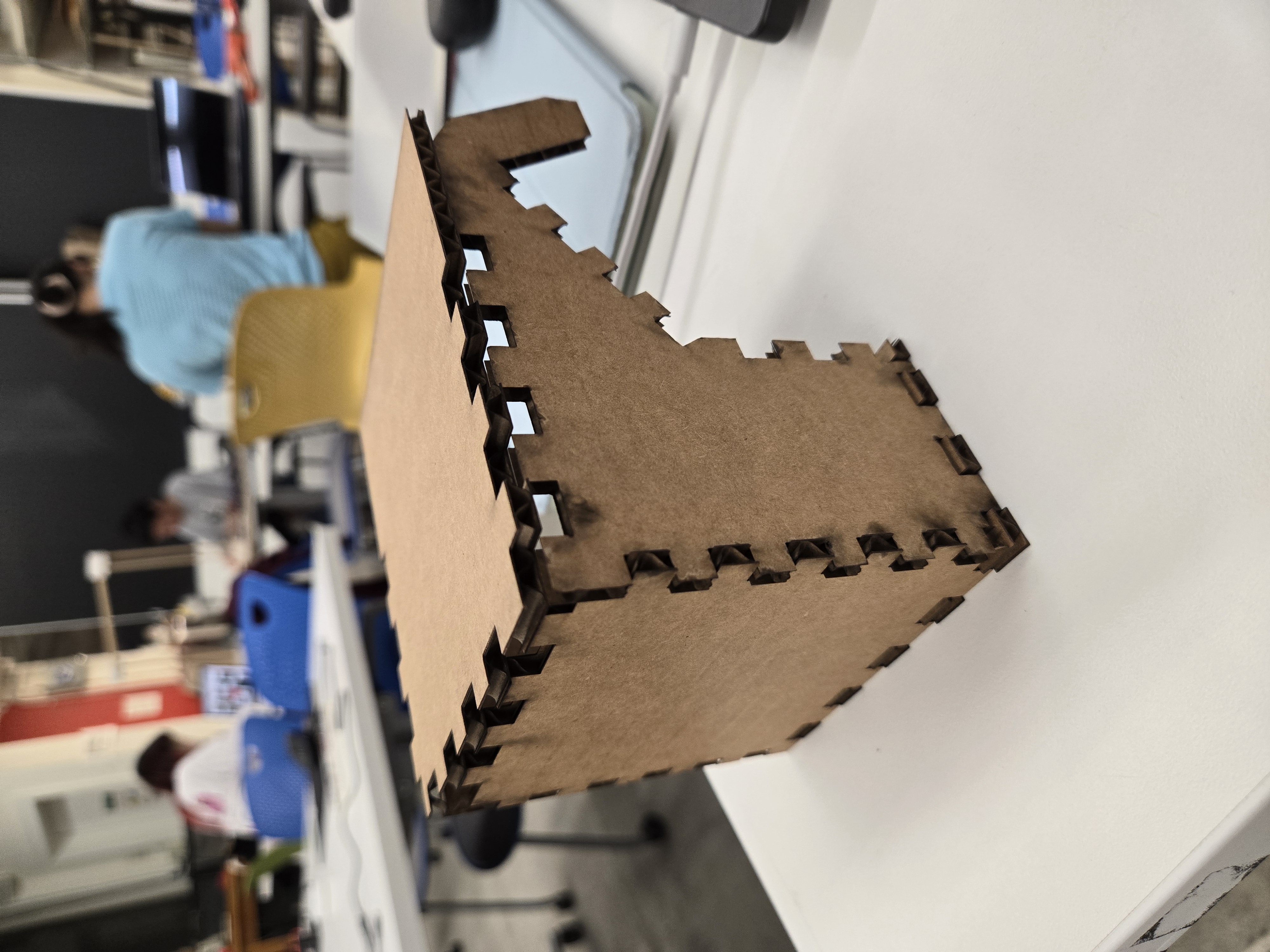 Putting the models in was quite helpful in determining how to design the proportions of the machine. It also made the next step, which was designing each of the sketches of all the faces of the cabinet to be laser cut, much easier. With a simple shape, like a box, I could get away with just looking at diagrams online of how boxes lay flat and pretty easily understand the basic layout. However, with the screen mount at an angle, the button mounts, and the overall more complex nature of the cabinet, the model in fusion was instrumental in not going crazy when modeling. To do this, I created sketches along each of the faces and took into account the thickness of the material I was using when designing the teeth. The non-parallel edges are not the same length or proportions, so I had to manually calculate the appropriate spacing and side of the teeth for each component. Because of these heterogeneous sides, the corners of each side had a puzzle piece-like structure in order to accommodate the two different teeth sizes coming together, which was quite the challenge. It also meant that the cabinet could only fit together in a certain configuration, which was a challenge for assembly. Here are a couple of the cardboard prototypes that I created to test the teeth fit.